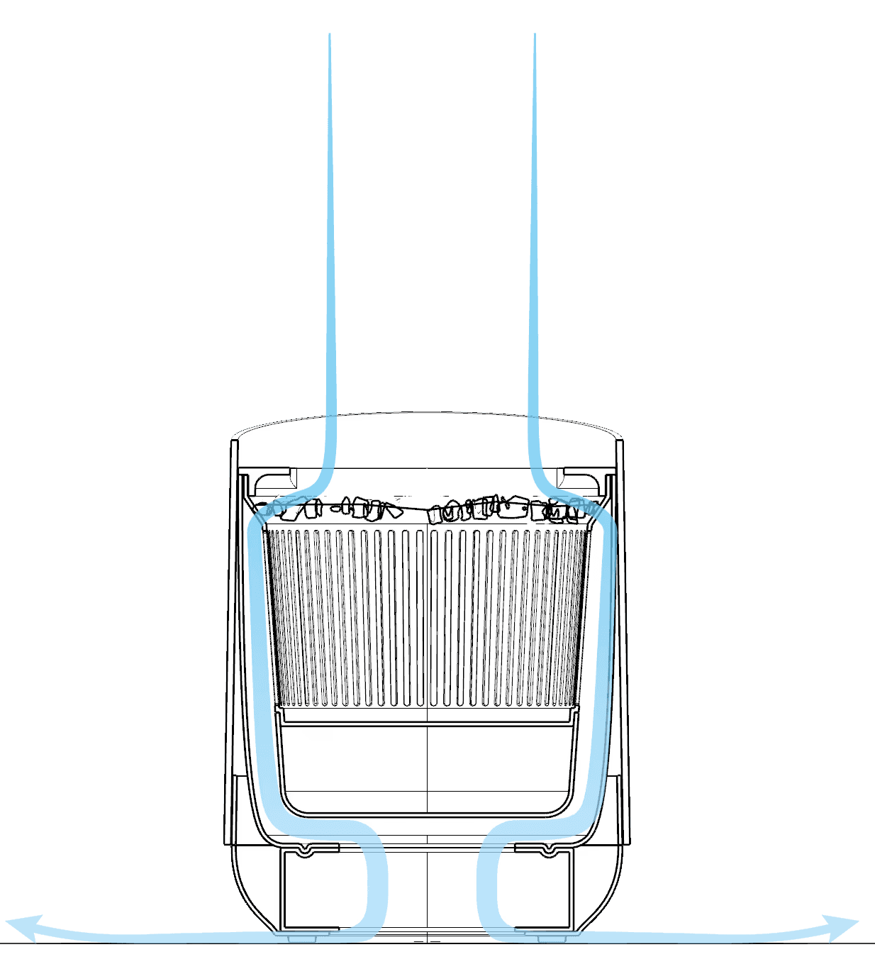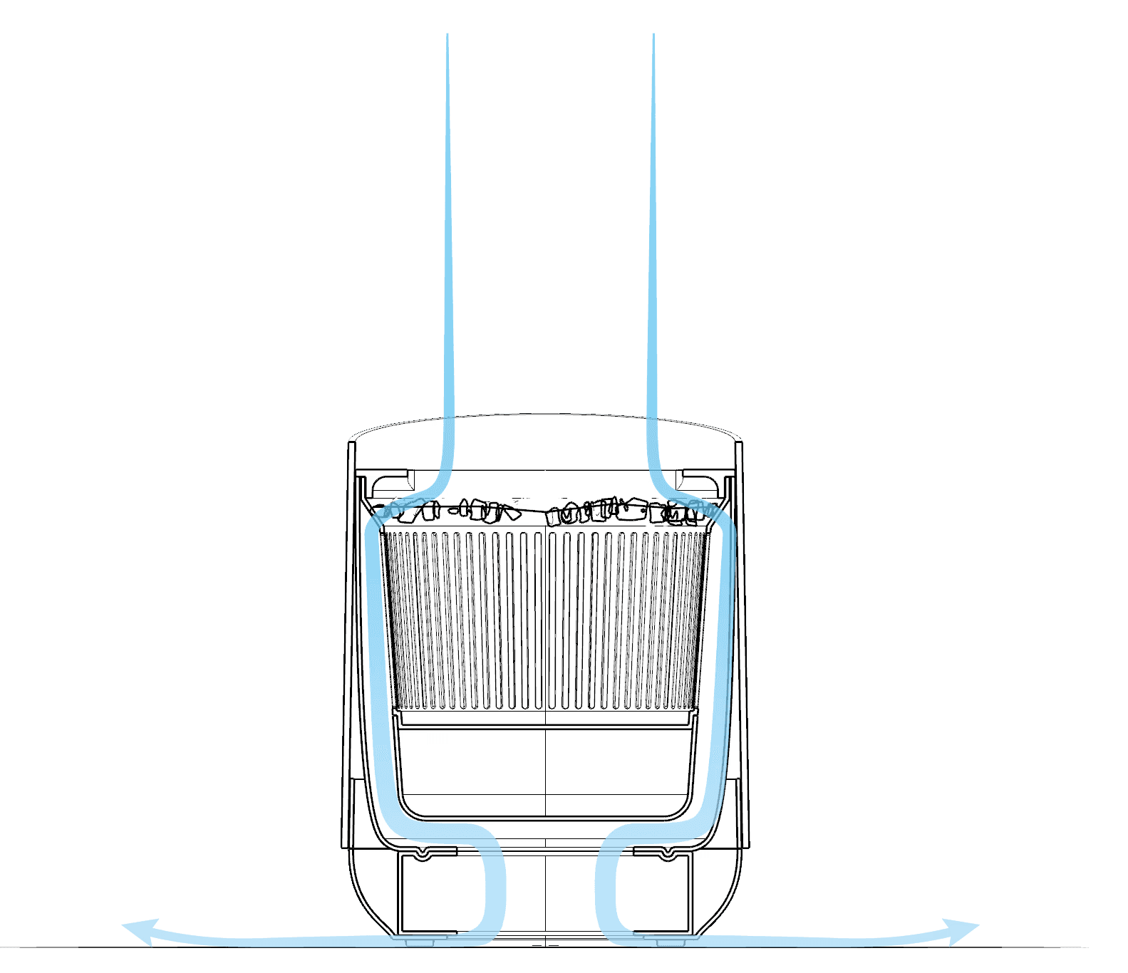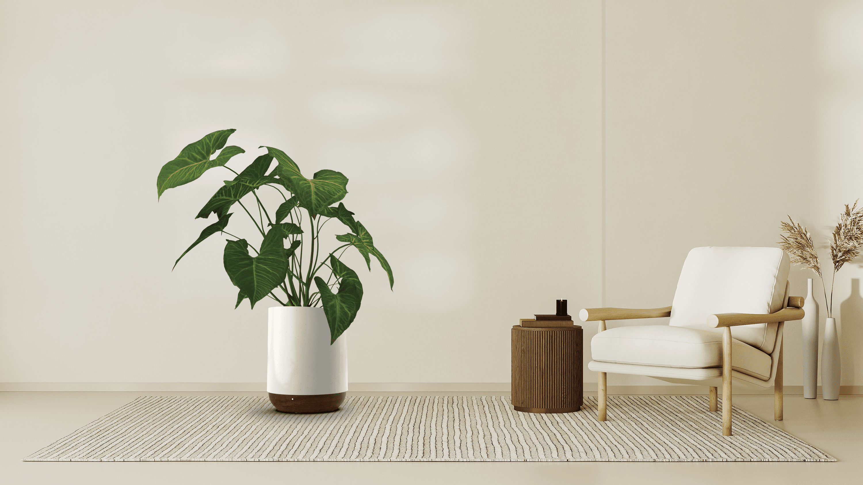 The system allows air to circulate through the soil, enhancing its natural filtering properties before releasing it back into the room.