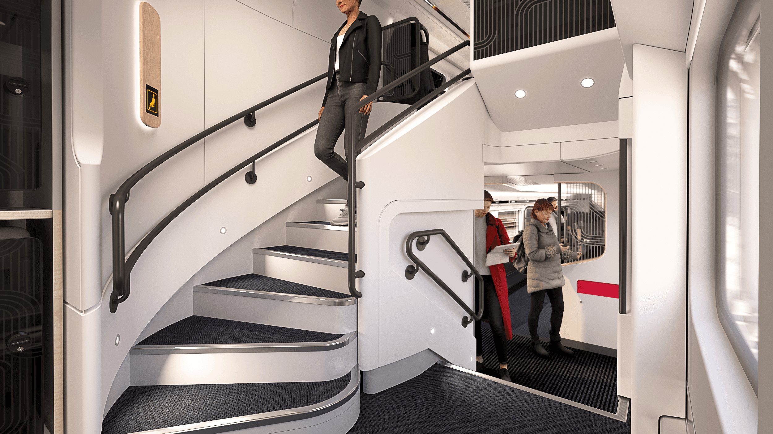 • Lead 3D modeling and high-end visualization • Contribution to a successful call for tender • Development of a dedicated internal workflow • User experience and passenger flow optimization • Cabin design, space planning and overall aesthetic direction